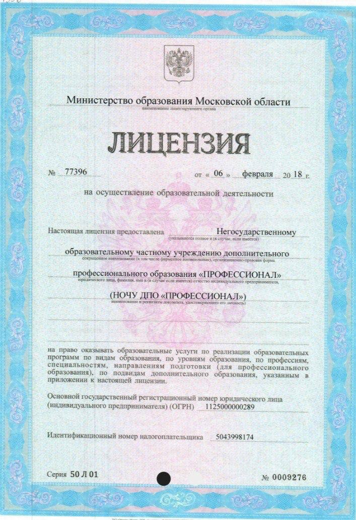 Негосударственное образовательное частное учреждение ДПО «ПРОФЕССИОНАЛ»