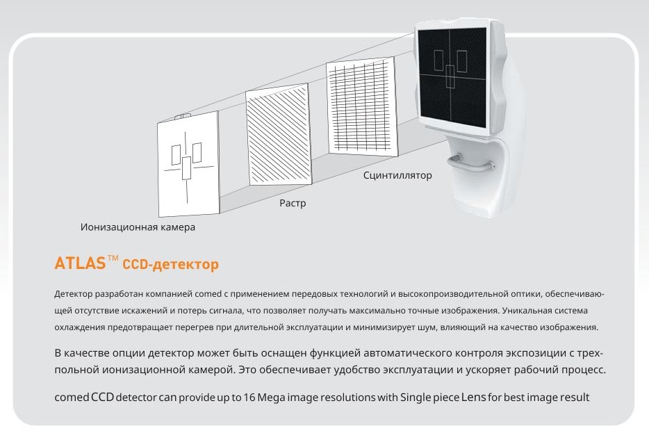- CsI-сцинтиллятор — высокая световая отдача, снижение шума, улучшенная чувствительность.