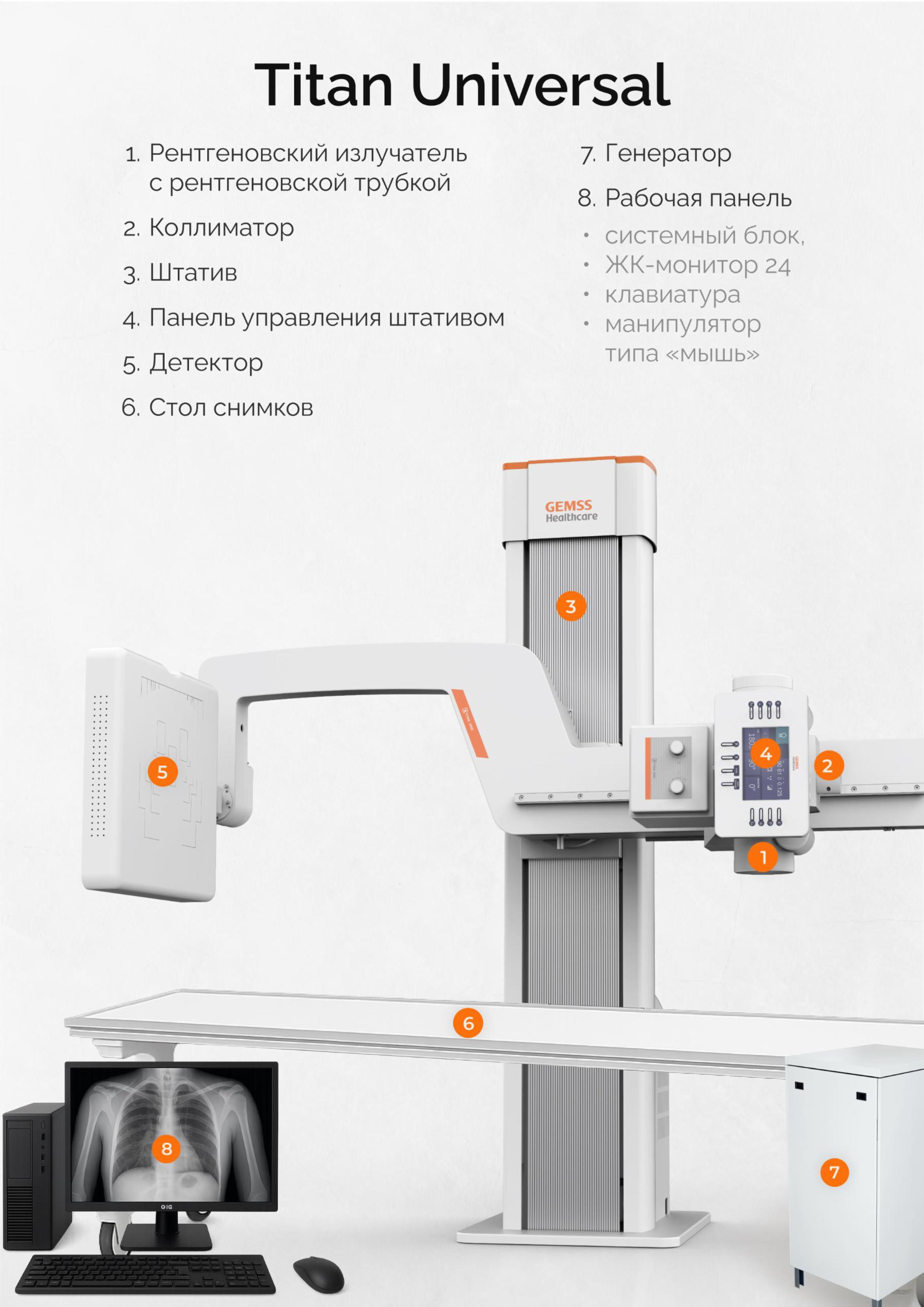 GEMSS Titan 2000 UNIVERSAL: рентген аппарат экспертного класса с 150+ протоколами